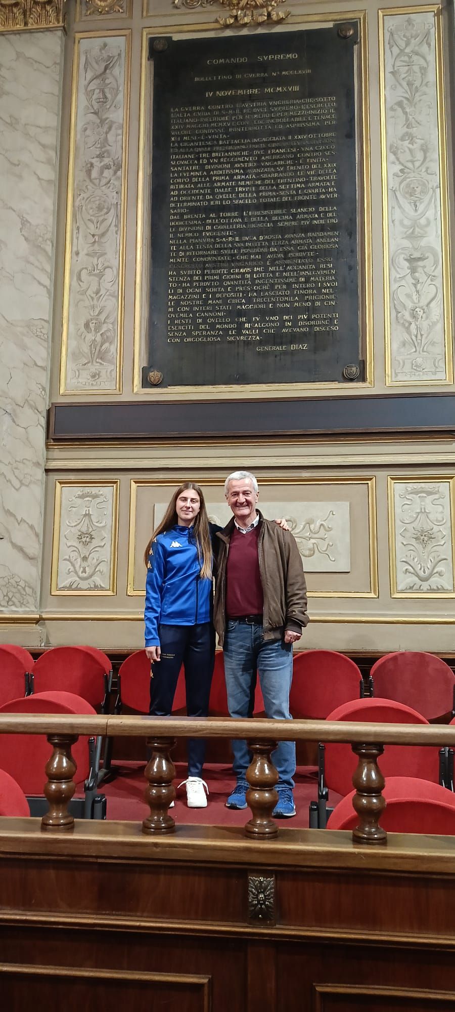 Asia Bernardini riceve un riconoscimento per onorare la vittoria della maglia tricolore sui 3000 siepi a Grosseto ai camp ita U20 ( titolo che le permette di partecipare ai campionati europei in Finlandia). chiamato a premiare l'allenatore Claudio Ubaldi, già campione italiano siepi davanti all'azzurro Francesco Panetta come racconta il moderatore dell'evento.